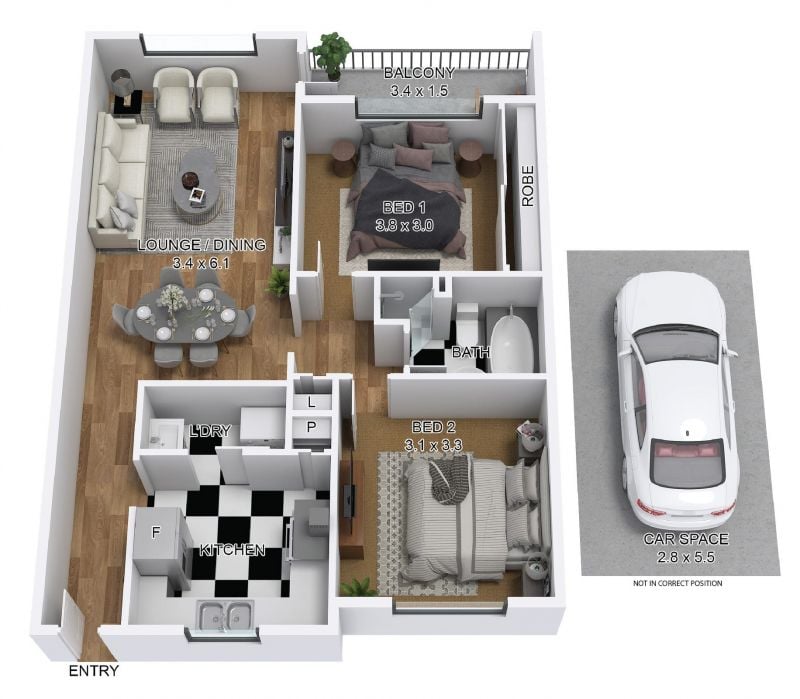- Spacious bedrooms with built-in robe to the master