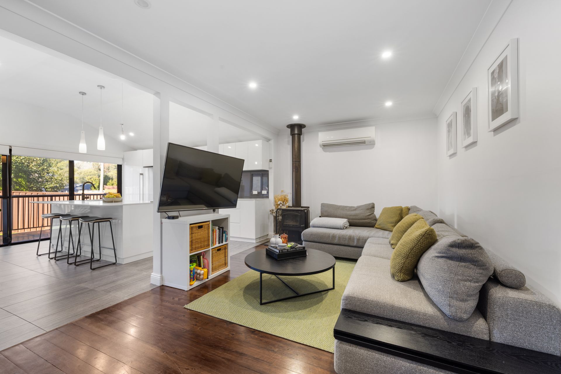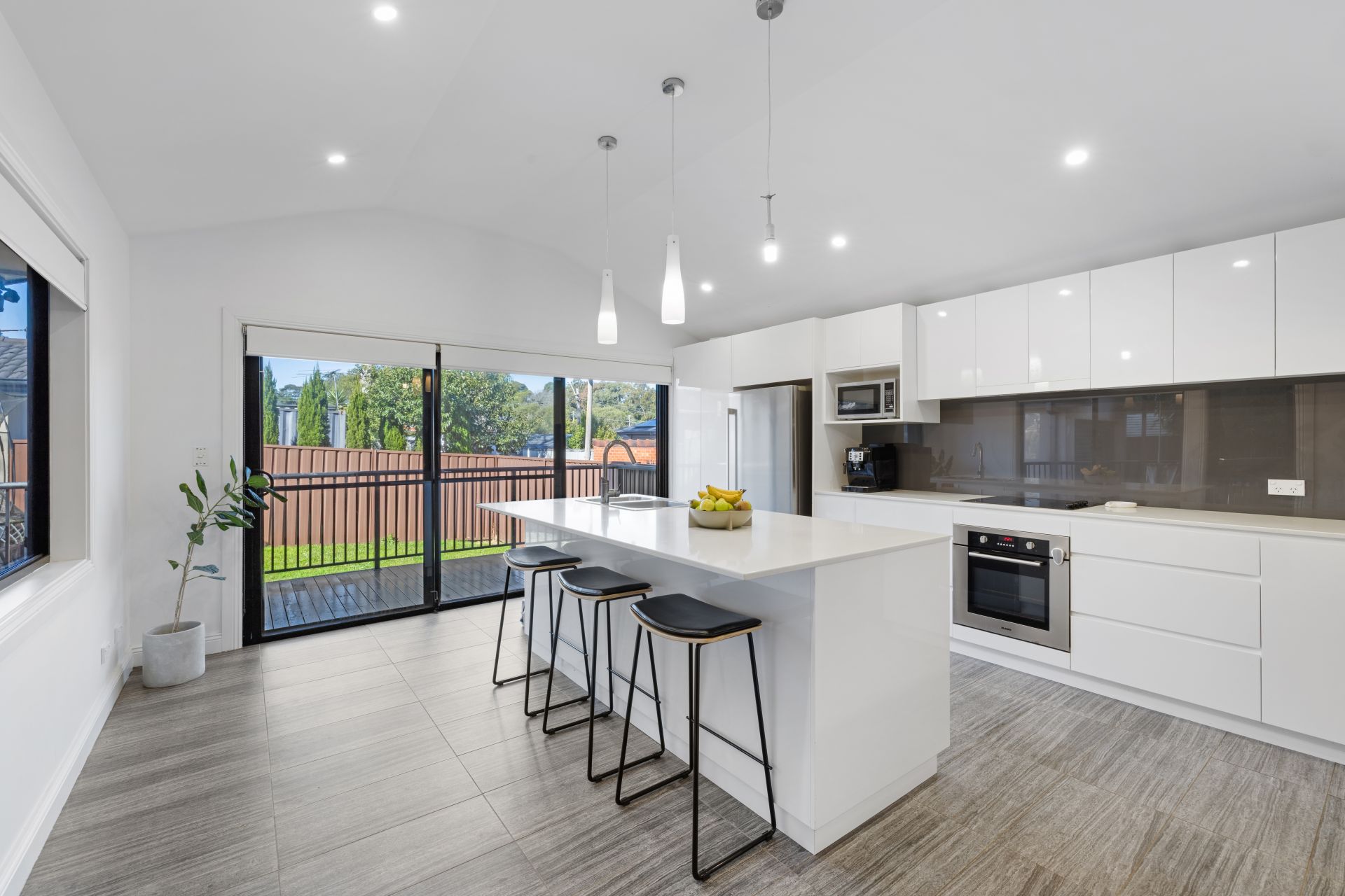 - Modern open plan kitchen with stainless steel appliances
