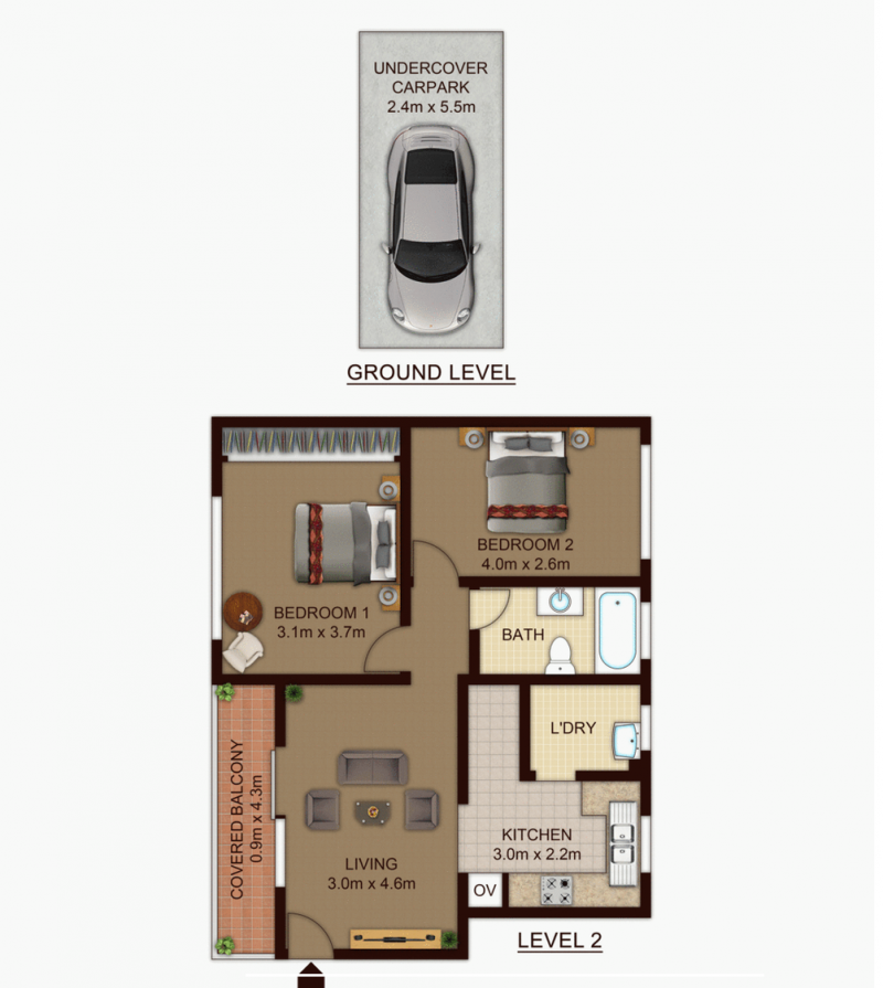 - Secure undercover car space with easy access