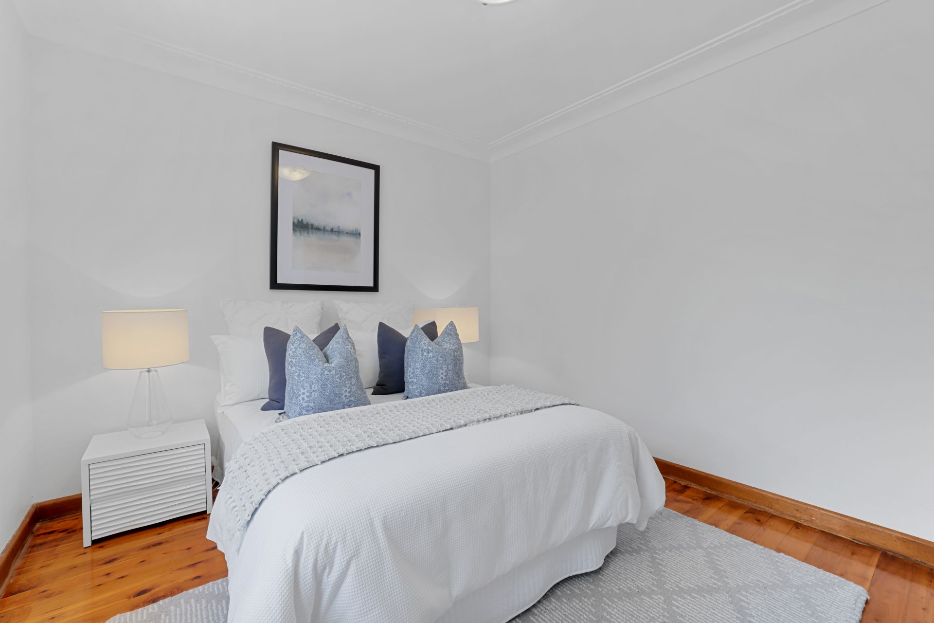 - Light stained timber floorboards