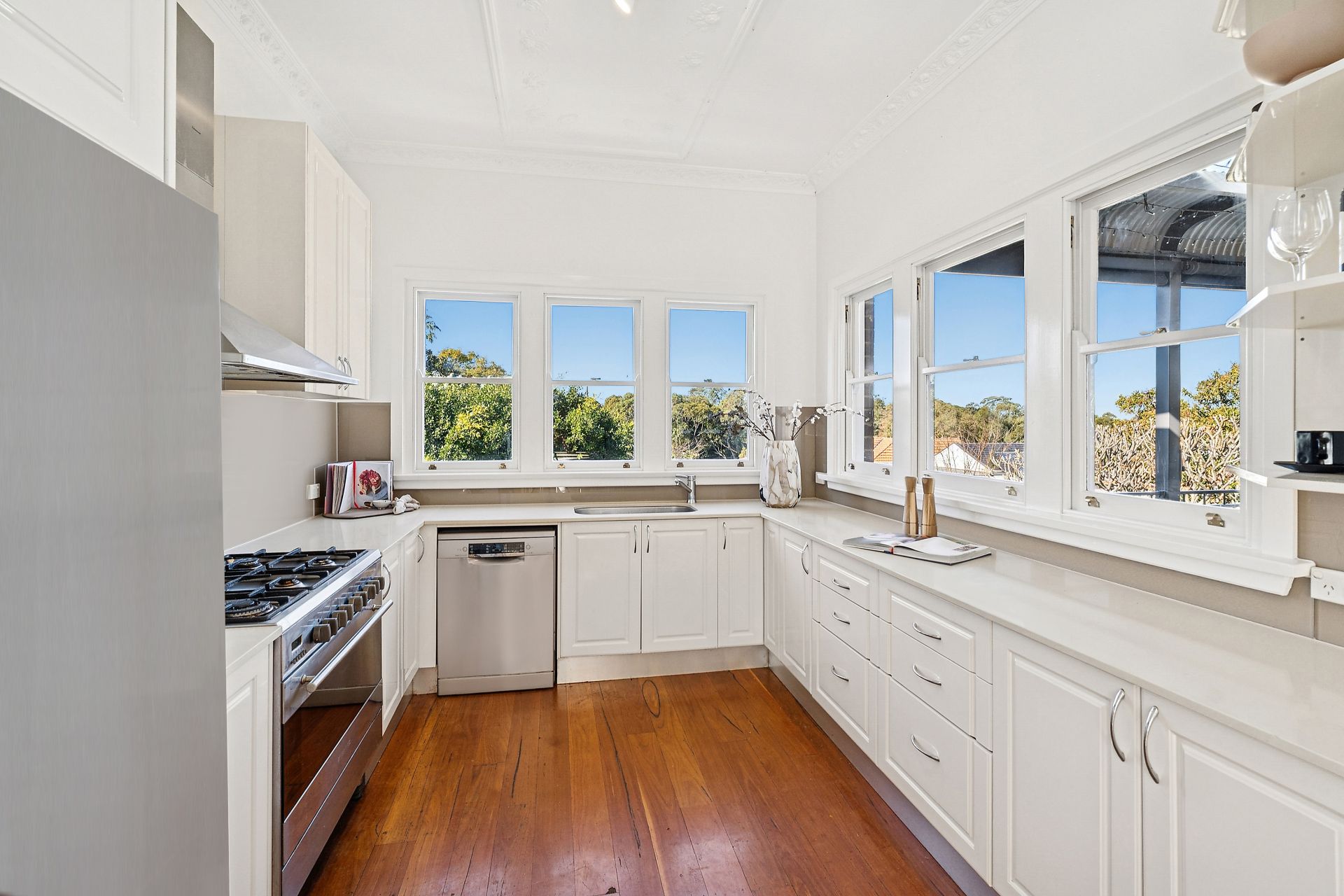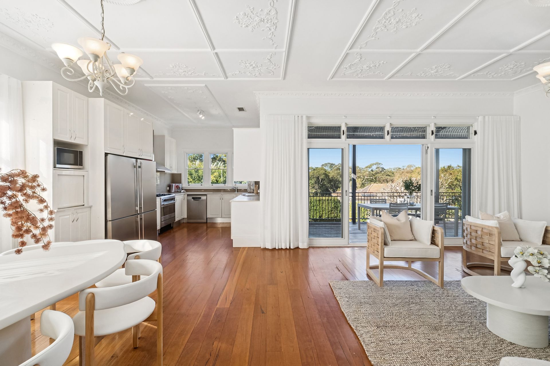 This expansive residence, set over two levels on a generous 934sqm gated parcel of land, offers both refined entertaining spaces and private family retreats. The formal living room with original fireplace exudes character, while the open-plan kitchen, dining and family living space flows seamlessly to a lush north-facing balcony, perfect for relaxed gatherings and warm summer evenings.