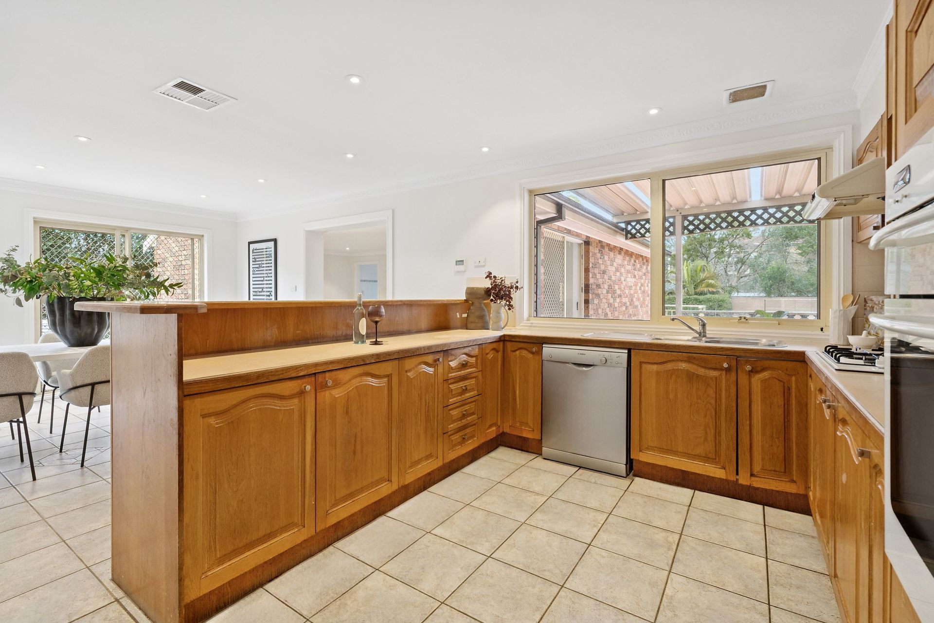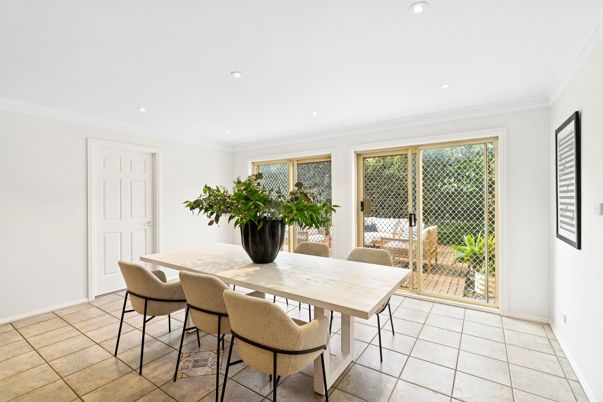 The open-plan kitchen overlooks a casual dining area that flows seamlessly to a sun-soaked courtyard, ideal for everyday meals or weekend entertaining.