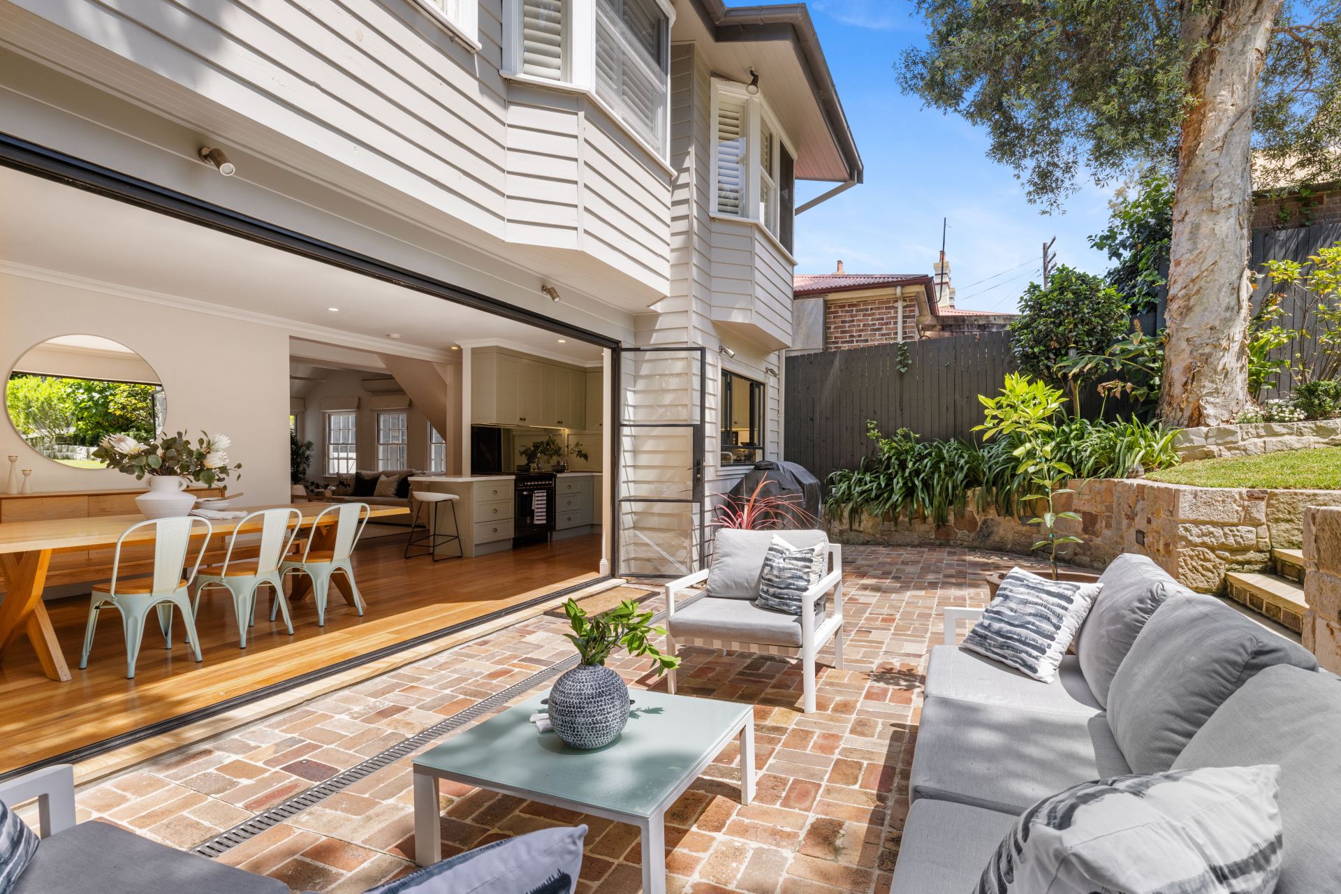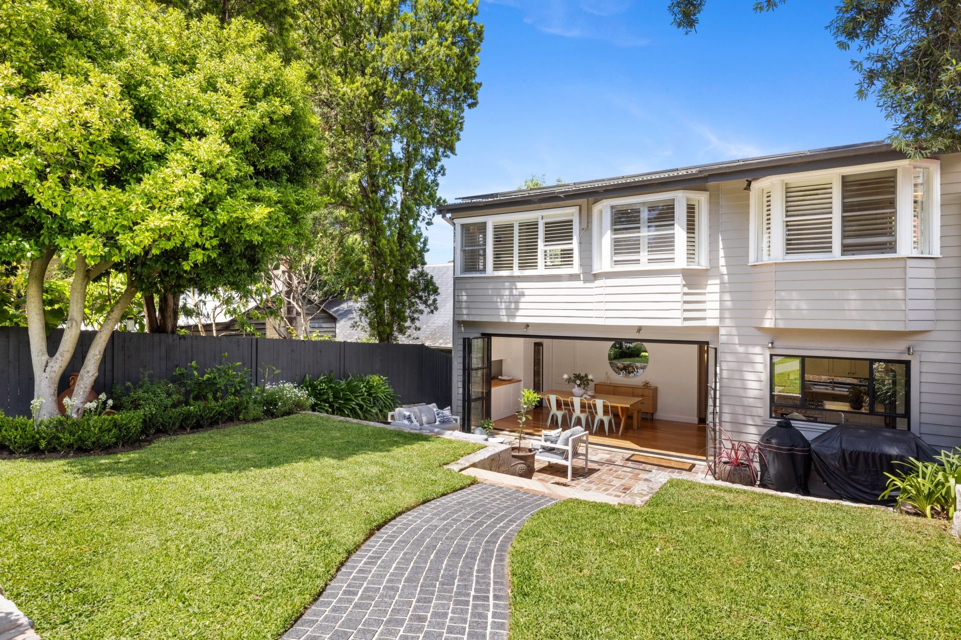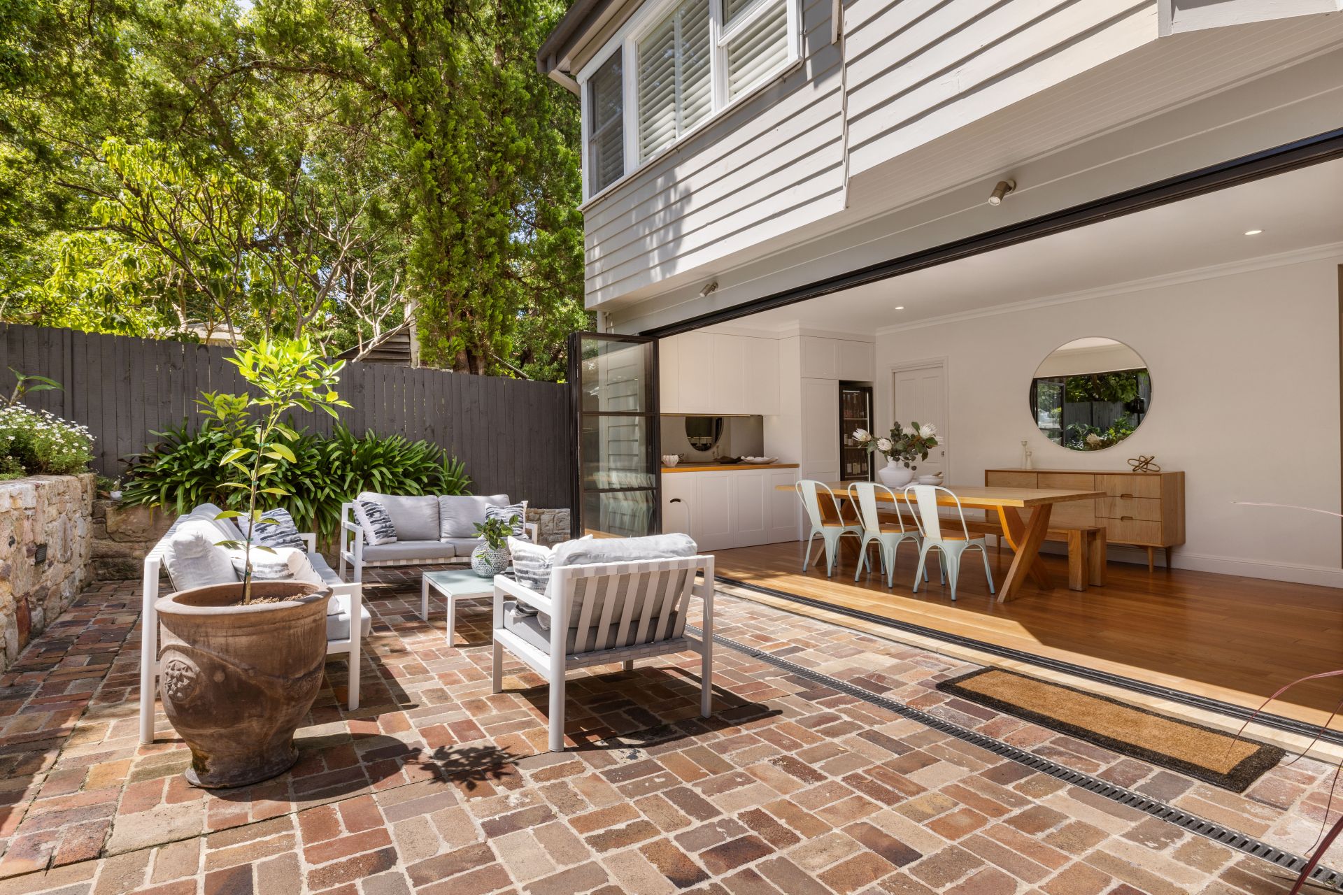 This luxurious 4-bedroom Hunters Hill peninsula home is a harmonious blend of heritage charm and resort-style living. The 1867 quaint cottage entry unveils an open-plan living room flowing into the kitchen and dining area.