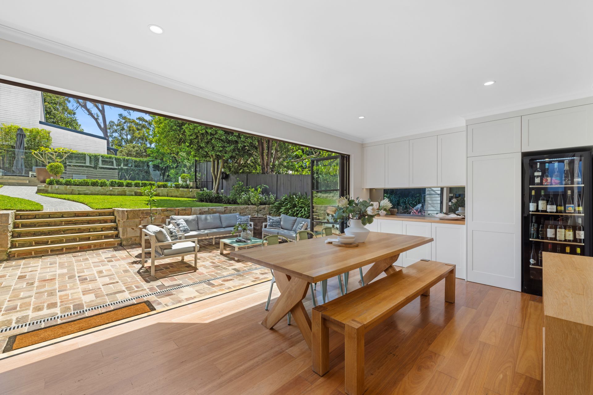 Expansive steel bi-fold doors lead onto the courtyard seating area and give way to the established gardens and lawns. Finishing off this outdoor living haven is a fully tiled inground gas-heated swimming pool with its own substantial seating and entertaining area.