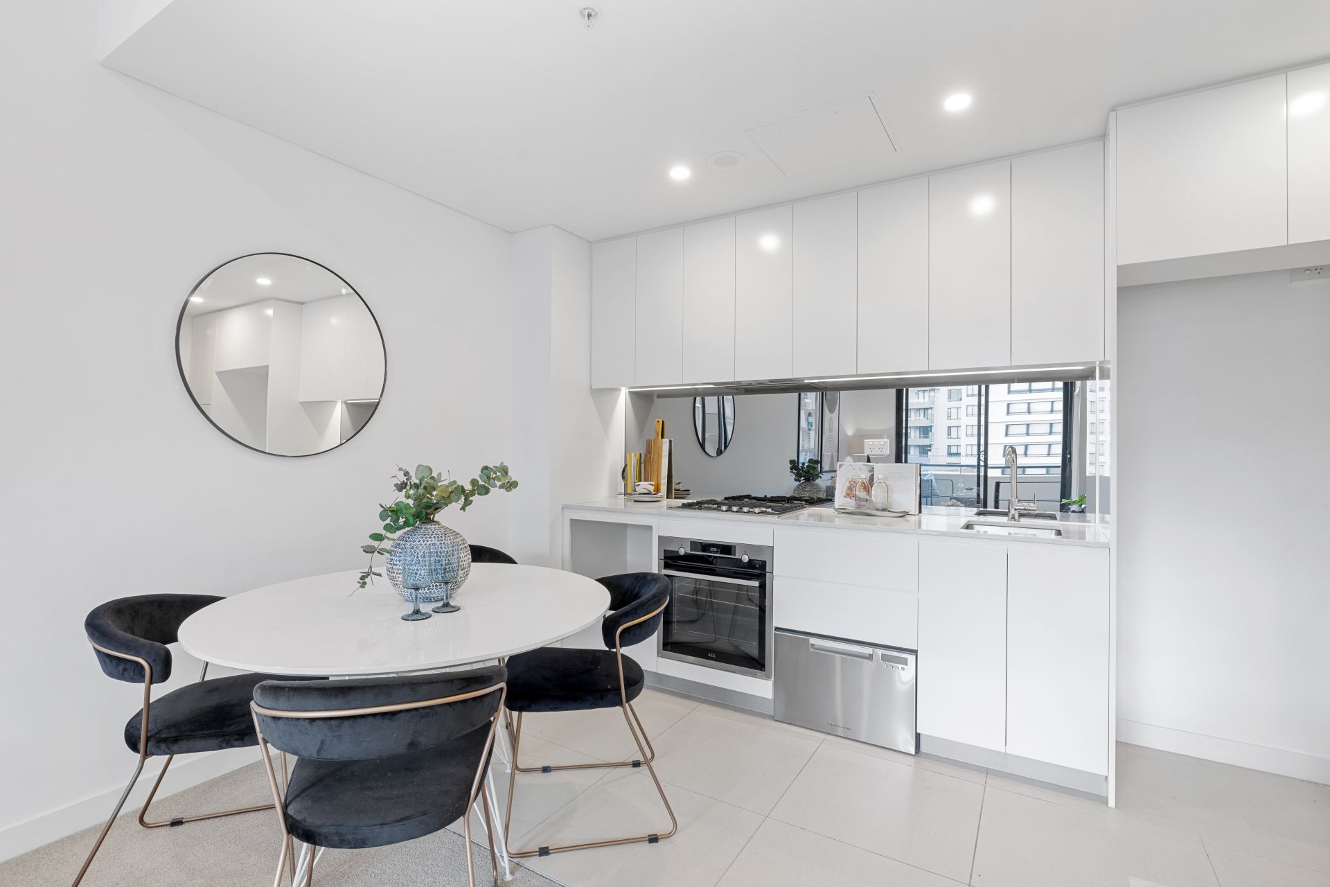 - Modern kitchen fitted with stone bench tops